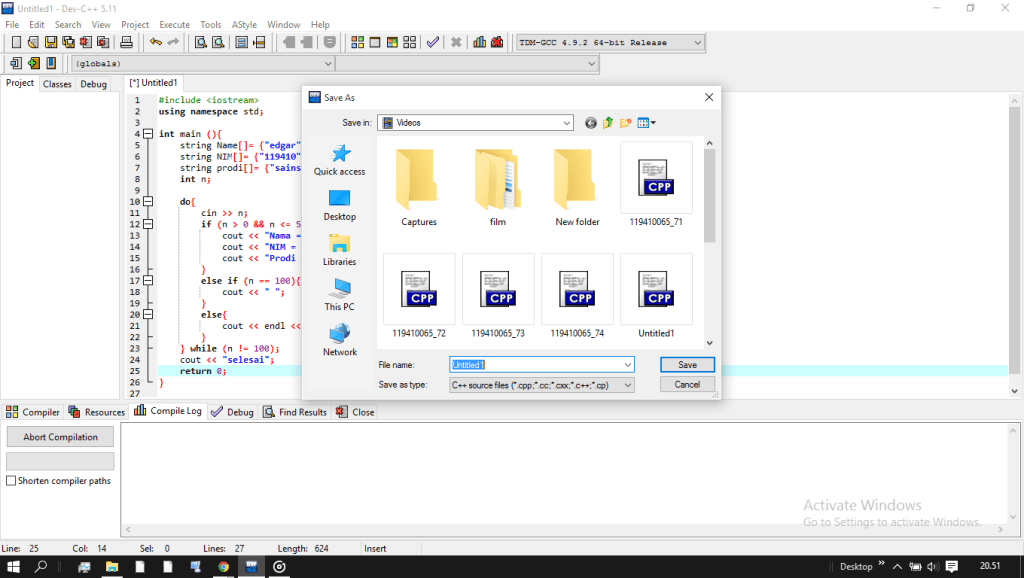 compile disini berfungsi untuk mengecek C script yang anda sudah buat tadi, apakah masih ada yang salah atau tidak. hal ini diperlukan karena bahasa pemrograman bersifat sensitif seperti halnya huruf kapital, bia anda beda huruf kapital saja program anda dapat gagal berjalan.